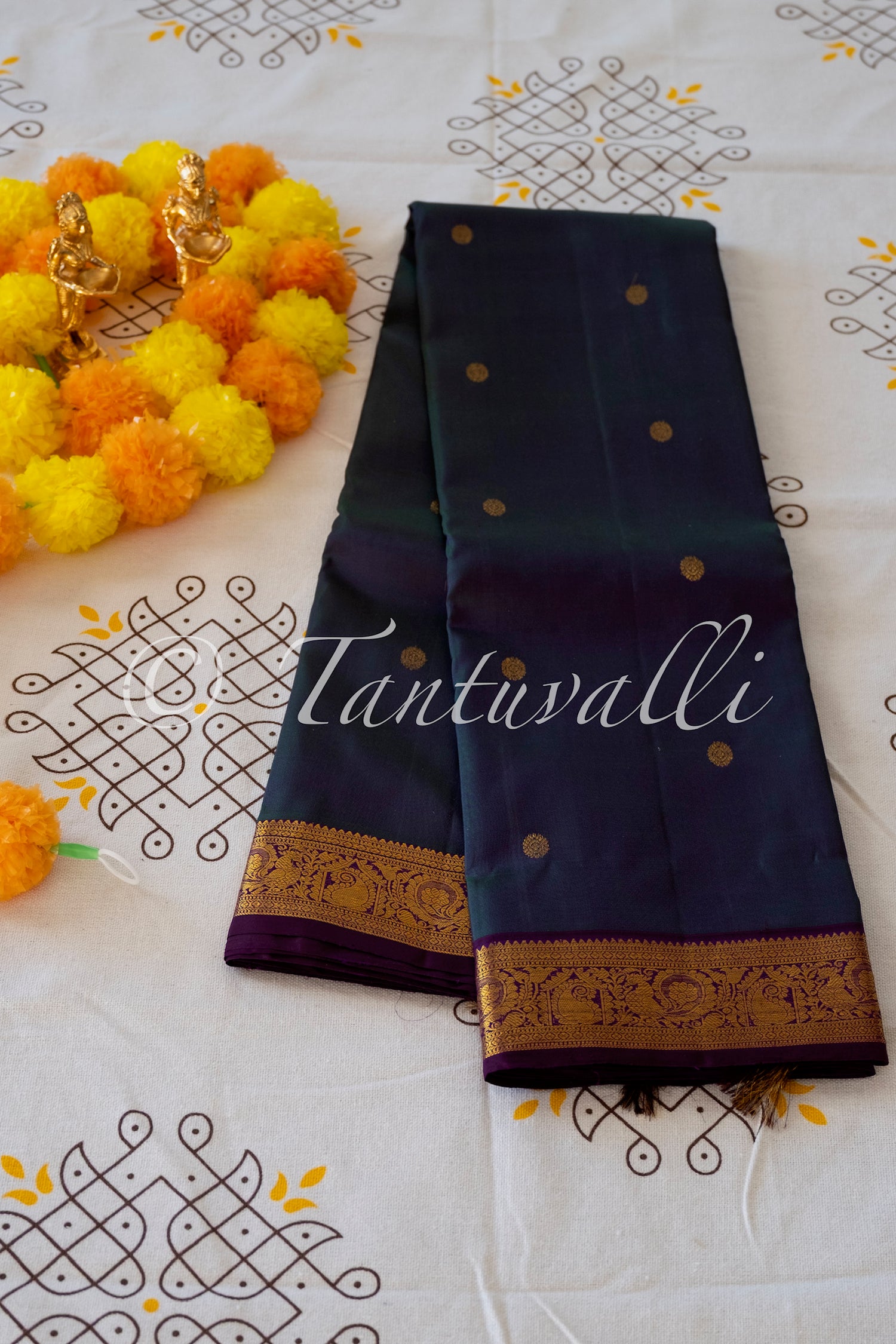 Antique Black with White Thazhampoo Korvai